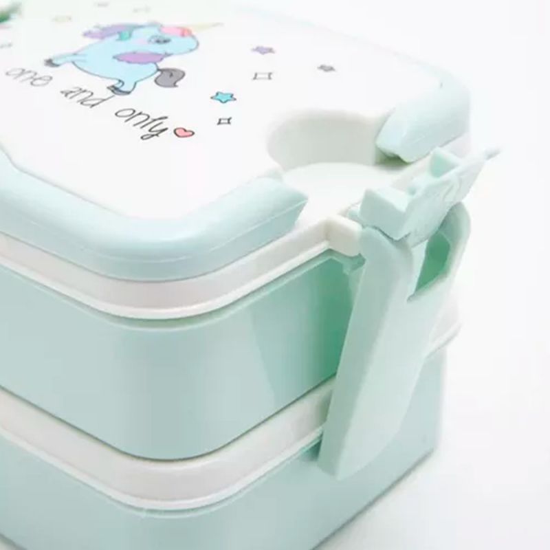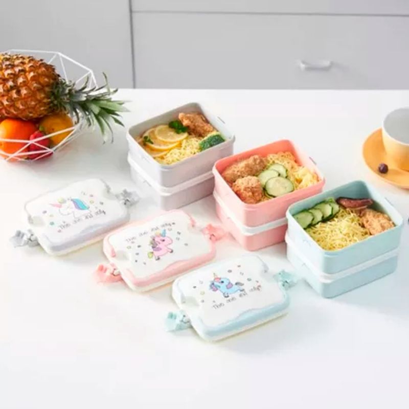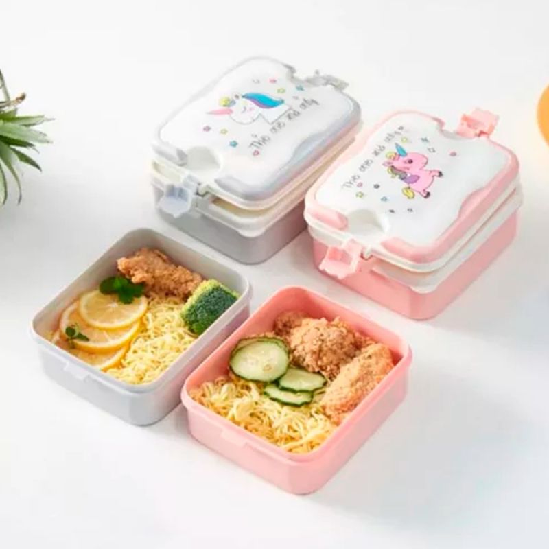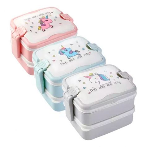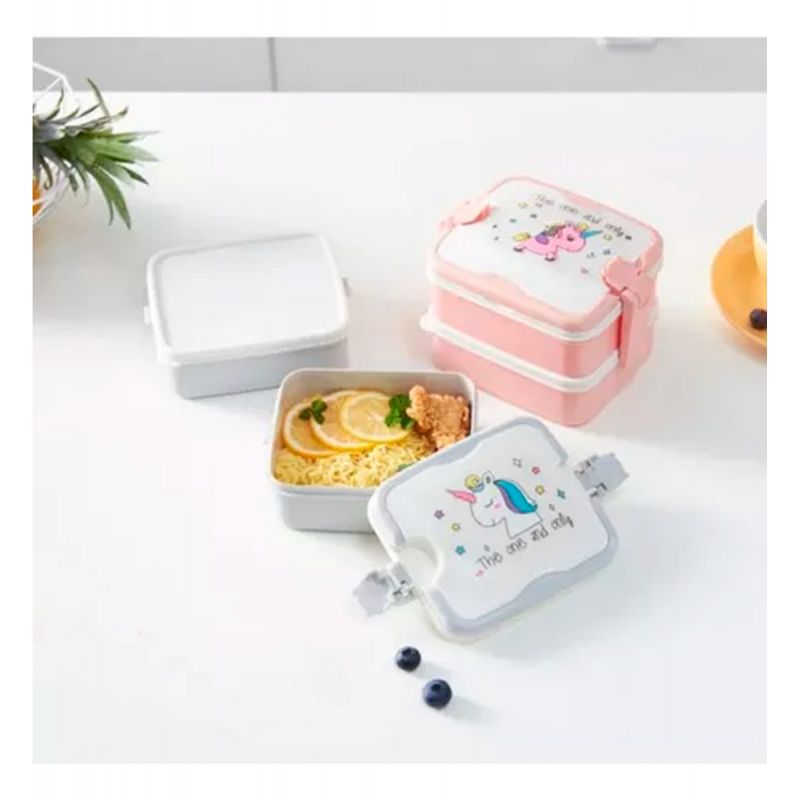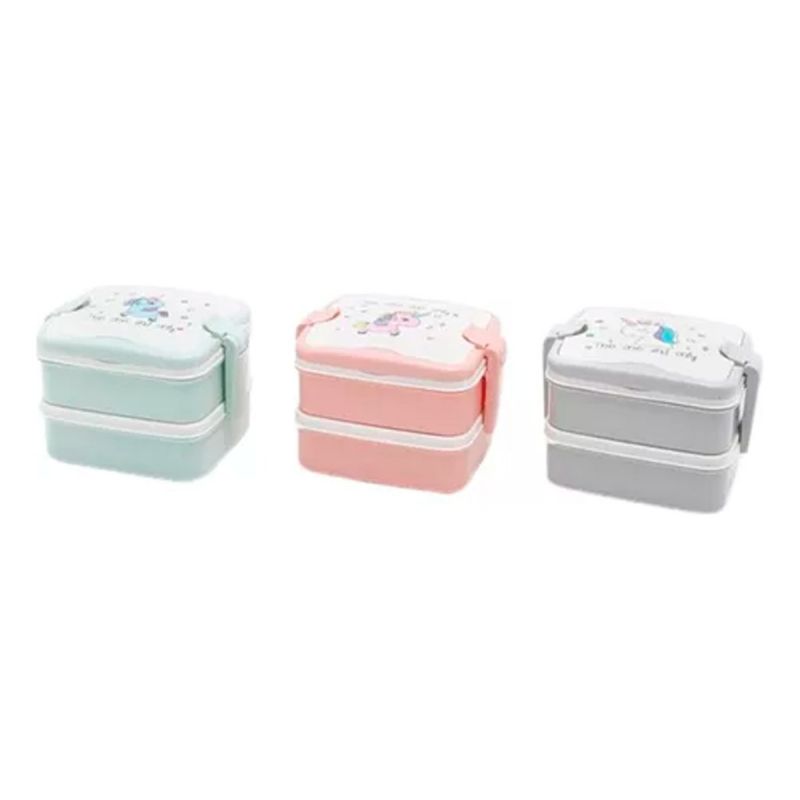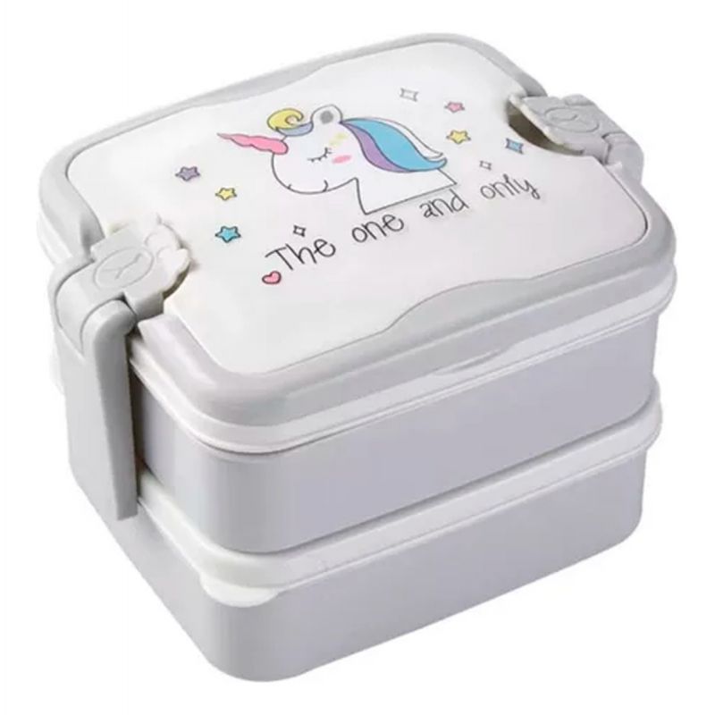 Vianda con Dos Pisos Unicornio y Estrellas 17*12.5*11cm J06-6301 gris