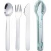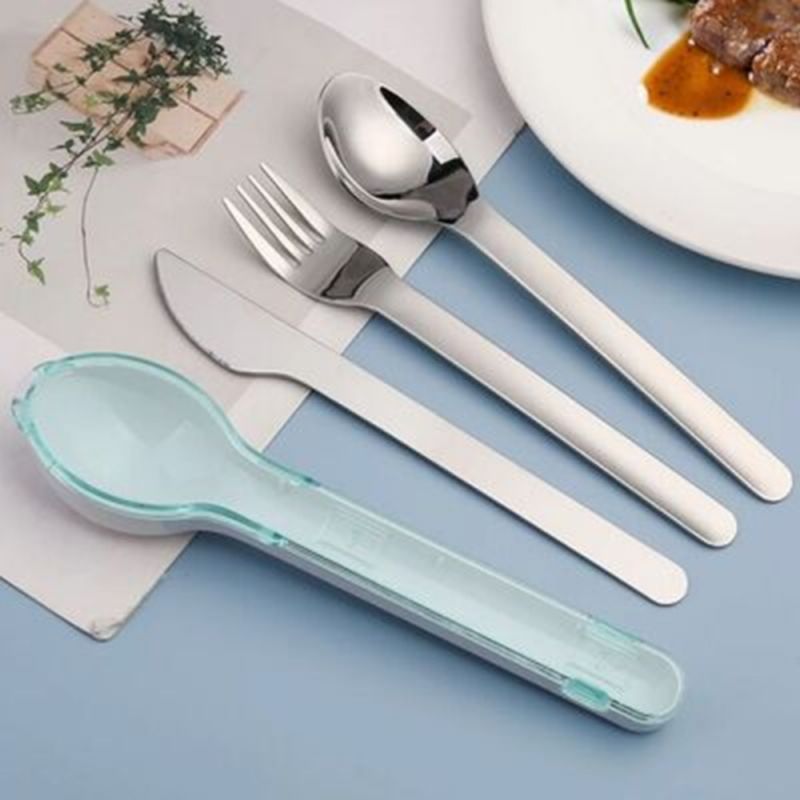 Set Cubiertos Portatil Camping Acero Inoxidable celeste
