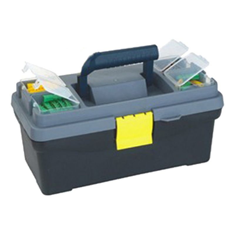 Caja ideal para llevar de pesca con pequeñas cajas organizadoras REBATIBLES, cuenta con 1 bandeja desmontable que permite separar tus accesorios.