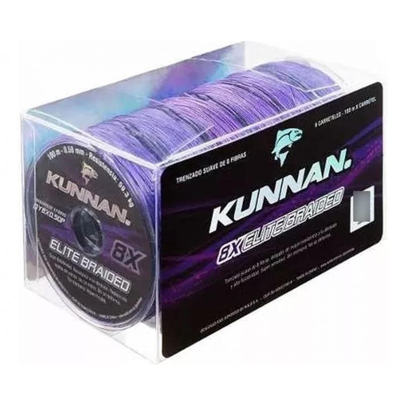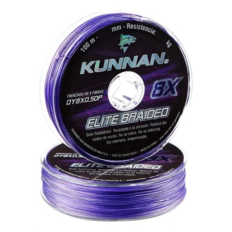 8X ELITE BRAIDED de KUNNAN® es el Multifilamento resultante de la aplicación de última generación tecnológica en el trenzado circular suave de 8 filamentos. Como resultado estas líneas delgadas resisten mayor peso, soportan mejor la abrasión y tienen una alta resistencia a la tirantez extrema. 0% de elasticidad asegura que las líneas no se deforman ni poseen memoria. La durabilidad en el color facilita su visibilidad. Su diseño es óptimo, permitiendo lanzamientos exactos a mayor distancia en condiciones extremas o turbulencias en el mar, ríos y lagos.