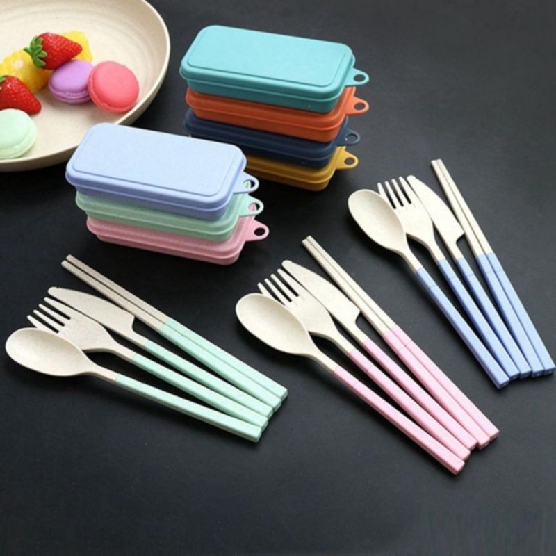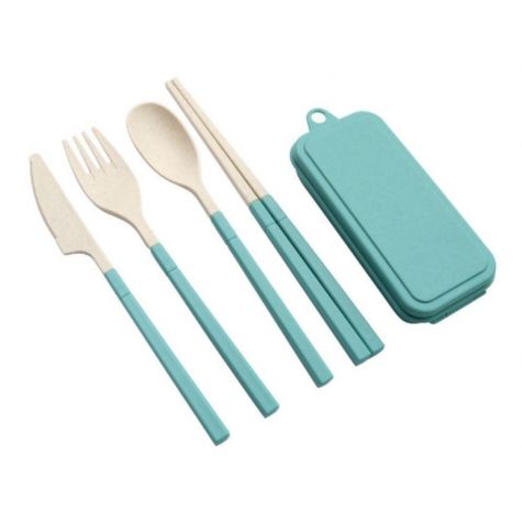 Set Cubiertos Cutlery Easy To Carry Fibra De Trigo Celeste