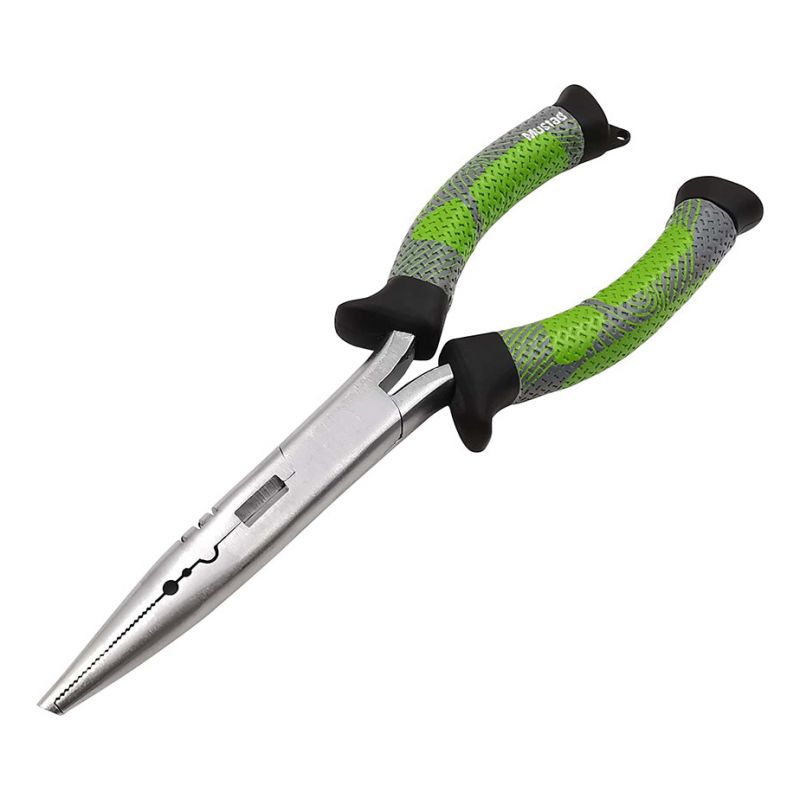 Pinza Mustad MT114 te permitirá abrir las anillas, sacar anzuelos, apretar tubitos de leader como así cortar cable, los pescadores pueden estar seguros de tener la herramienta adecuada a su lado. Estas pinzas están fabricados con acero inoxidable grado 420 con alto contenido de cromo y un acabado de níquel resistente a la corrosión. Para un agarre firme y extra comodidad estos alicates tienen mangos de agarre de golf.