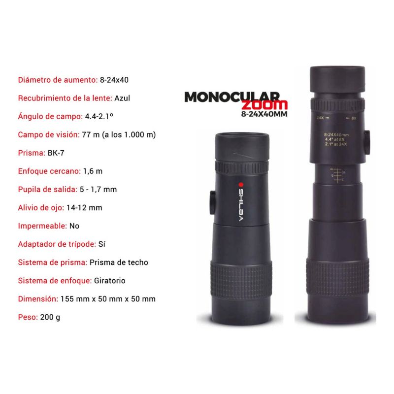 Monocular Zoom 8-24x40 mm de Shilba ha sido fabricado bajo los más estrictos controles de calidad pensando en el más mínimo detalle.