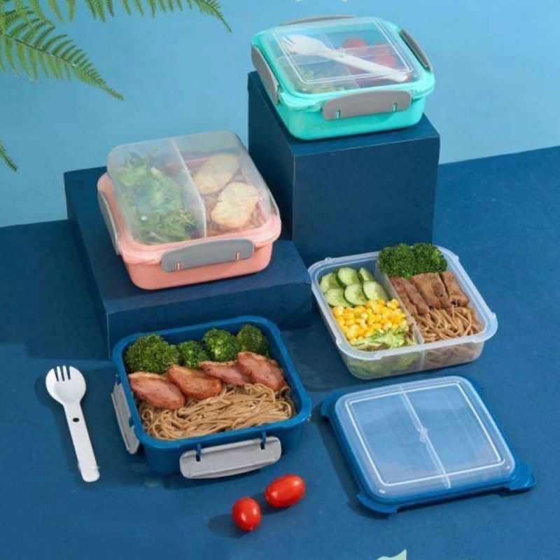 2. Esta lonchera que ahorra espacio le permite mantener diferentes alimentos separados de otros ingredientes pesados ??o húmedos durante su viaje desde el hogar a la oficina o la escuela. Cuenta con un compartimento base grande como capa inferior, una capa superior de 2 compartimentos a prueba de fugas, una tapa dividida a prueba de fugas y, finalmente, una hebilla de 4 para mantenerlo todo bien unido.