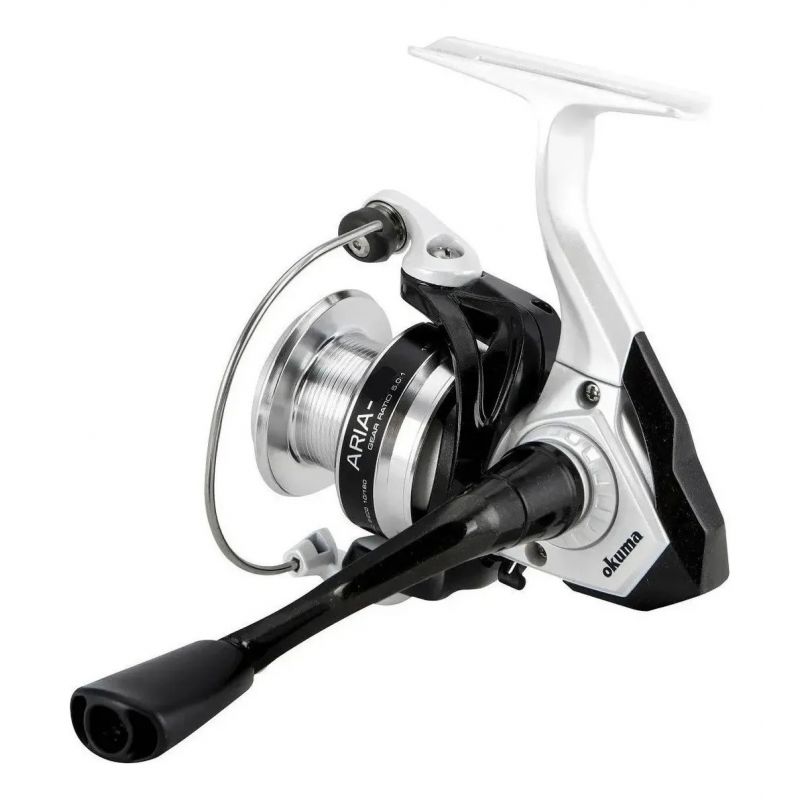 Los carretes giratorios Okuma Aria destacan por su estilo simple a través del esquema de colores en blanco y negro y el último diseño del cuerpo de Okuma. El carrete está equipado con CFR (Tecnología de rotor de flujo ciclónico), engranaje de piñón de latón cortado a máquina de precisión, carrete de control de línea LCS que hace que la fundición sea más suave, alambre de acero inoxidable. Aria es un carrete de uso general y una buena opción para comenzar a pescar.
