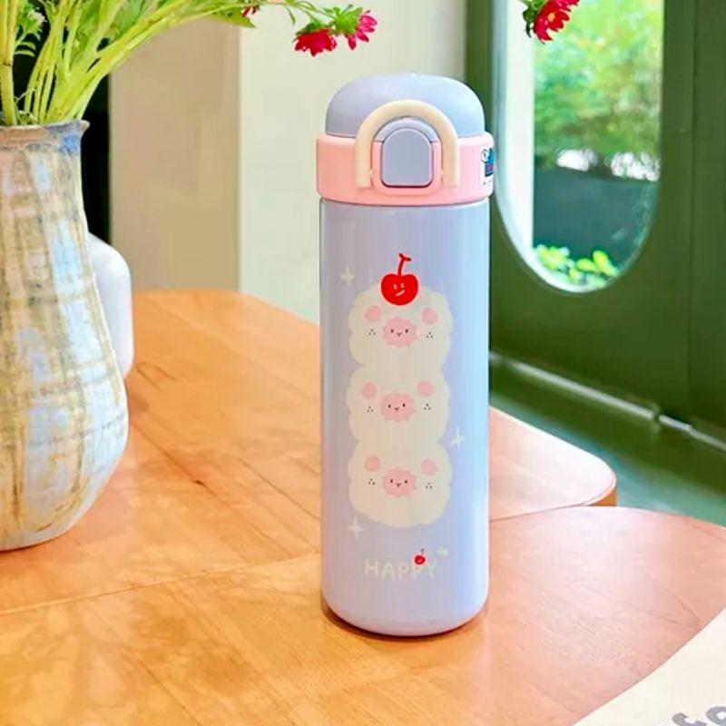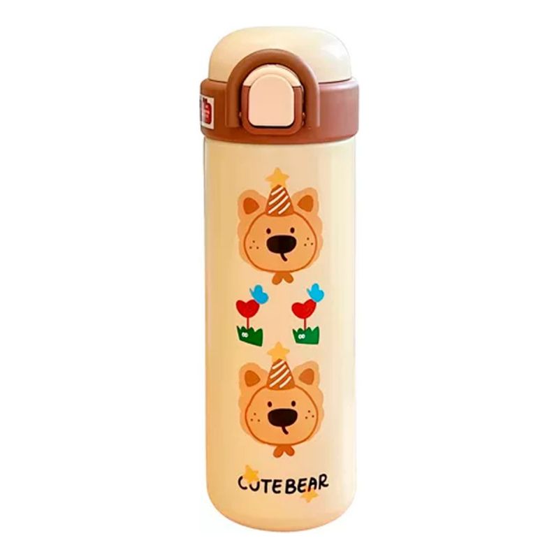 Botella Termo de Acero de Inoxidable con Doble Pico Happy Animals- 500ml Beige