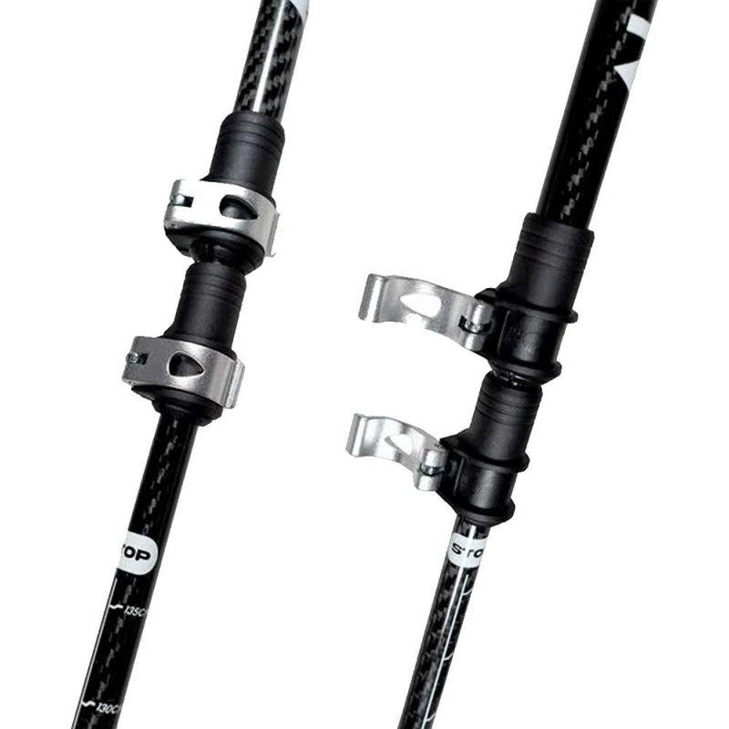 Bastones de trekking y trail de tres tramos telescópico. Mecanismo de bloqueo por deslizamiento speed lock, con abrazadera metálica de aluminio, que mejora su capacidad de abertura y cierre.