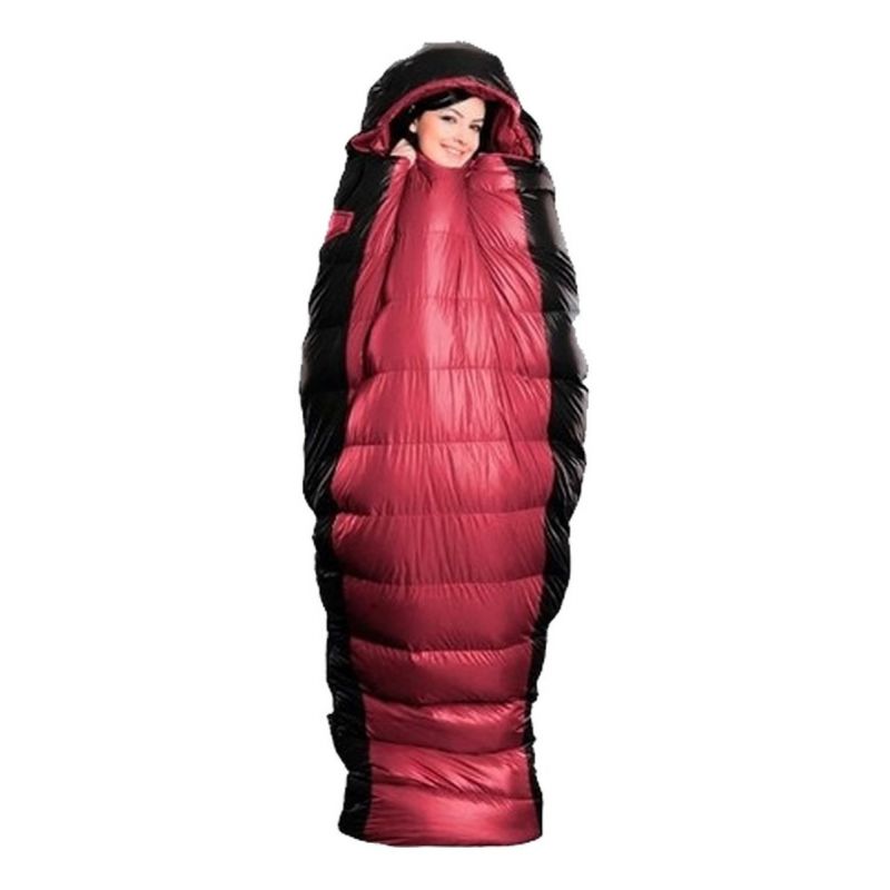 Bolsa de dormir tipo momia, ideal para clima frío.