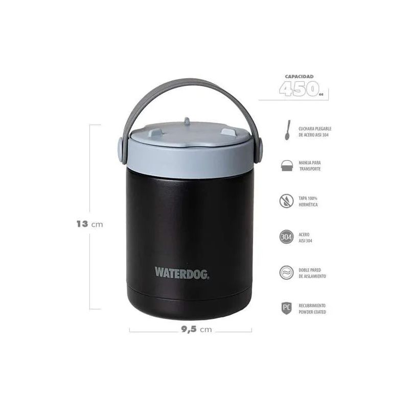Vianda termica Waterdog FOODI 450 cc NEGRO