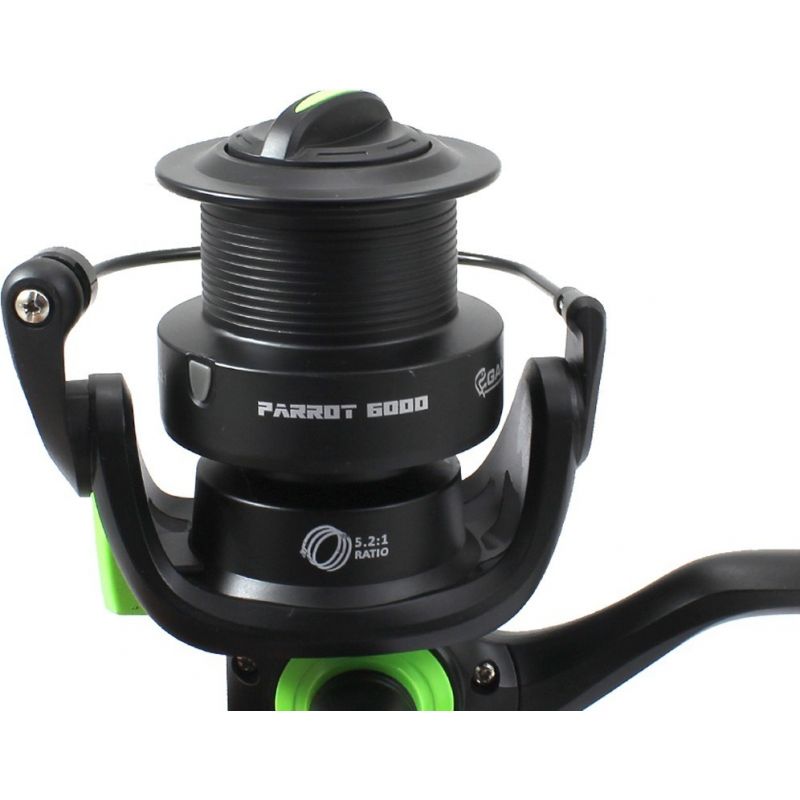 Nos teñimos de verde con el nuevo reel de Gamma Parrot con sistema Bait runner. Un reel especialmente diseñado para carpfishig con un sistema de freno doble frontal y de cola, con tecla de liberación de carretel, lo que lo hace el reel ideal para la pesca de Dorados, Surubi y Pati gigante con equipos de frontal, ya que permite la liberación de línea para la corrida del pez permitiendo con solo mover la manija que este trabe y accione el freno real del reel, de manera practica y cómoda para el pescador.