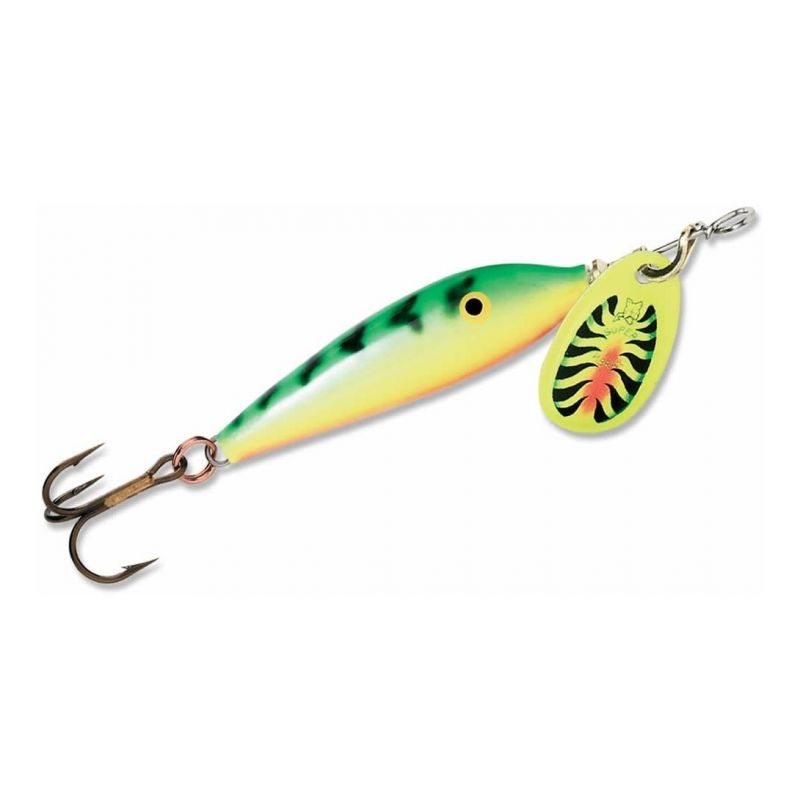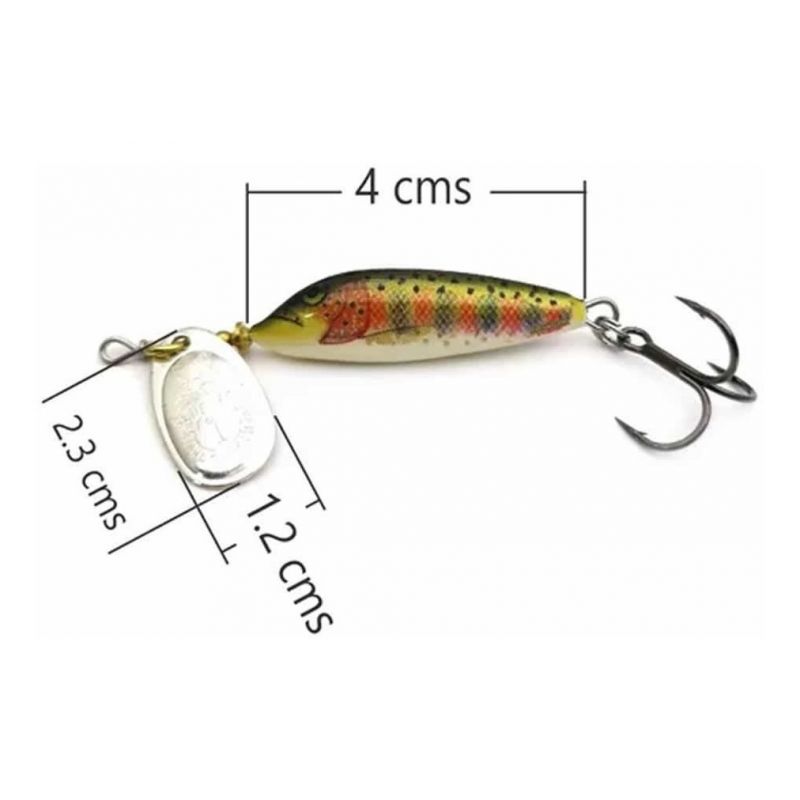 Acción rapida de minnow con cuchara giratoria. La acción rapida del señuelo del cuerpo de madera de balsa combinada con el tentador destello de un spinner en línea hace que esta sea una combinación muy efectiva.