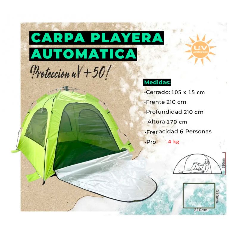 SISTEMA AUTOMÁTICO: Mecanismo de armado rápido que permite tener la carpa lista en un instante y plegarla con la misma facilidad.