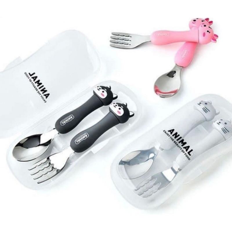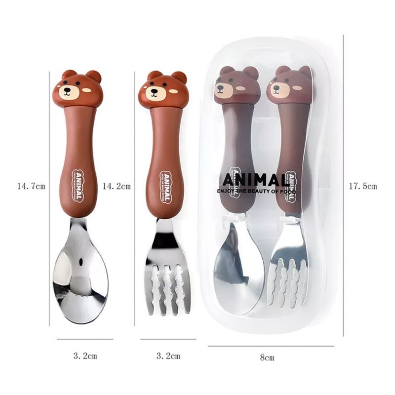 Set Cubiertos Infantil Animal Baby Gris
