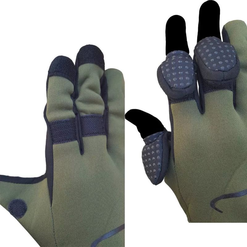 Guantes de neoprene de alta calidad de 2 mm de espesor con recubrimiento antideslizante para que no se escape ningun pez por mas resbaladizo que este aparte tienen refuerzos en los dedos que proporcionan el máximo confort.