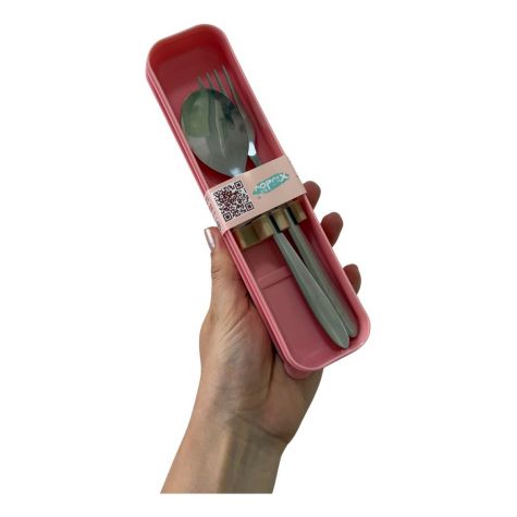 Set de Cubiertos de Acero Cunchara y Tenedor con estuche ROSA