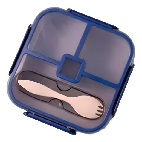 Vianda Hermética Cuadrada de 3 Divisiones + Cubierto y Salsera Good Lunch - 1100ml azul