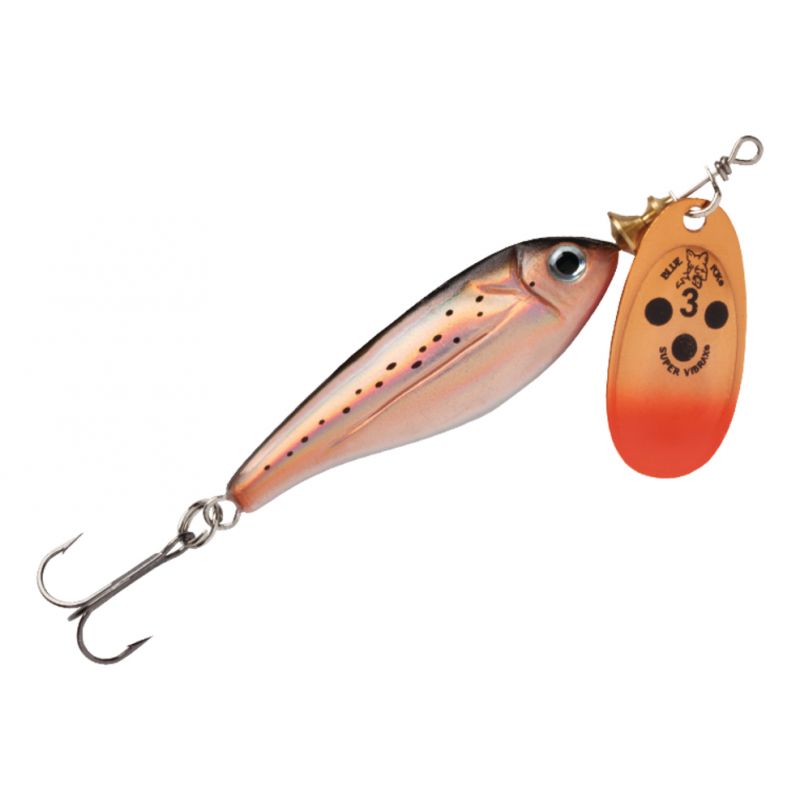 Acción rapida de minnow con cuchara giratoria. La acción rapida del señuelo del cuerpo de madera de balsa combinada con el tentador destello de un spinner en línea hace que esta sea una combinación muy efectiva.