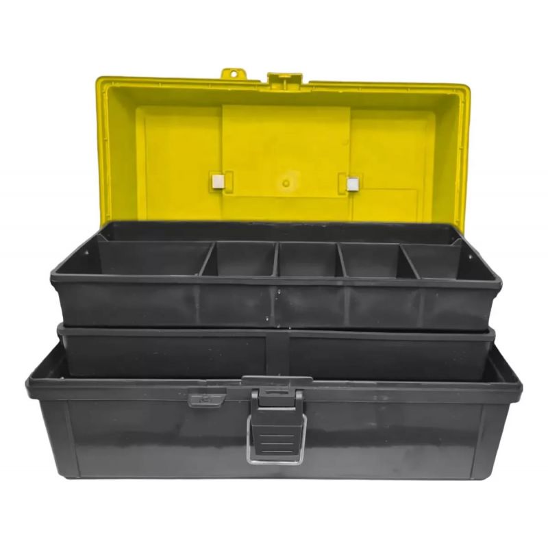Caja ideal para transportar de forma segura todos tus artículos de pesca y para distribuir los mismos en las bandejas organizadoras.