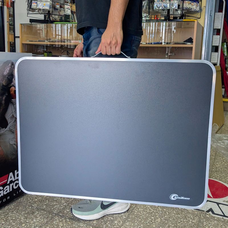 Con un diseño compacto, esta mesa se pliega fácilmente a solo 4 cm de grosor, facilitando su transporte gracias a la manija incluida.
