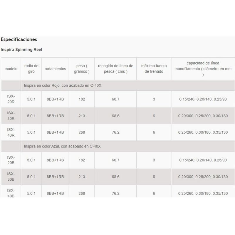 Capacidad (mm/m): 0.25/260, 0.30/180, 0.35/130