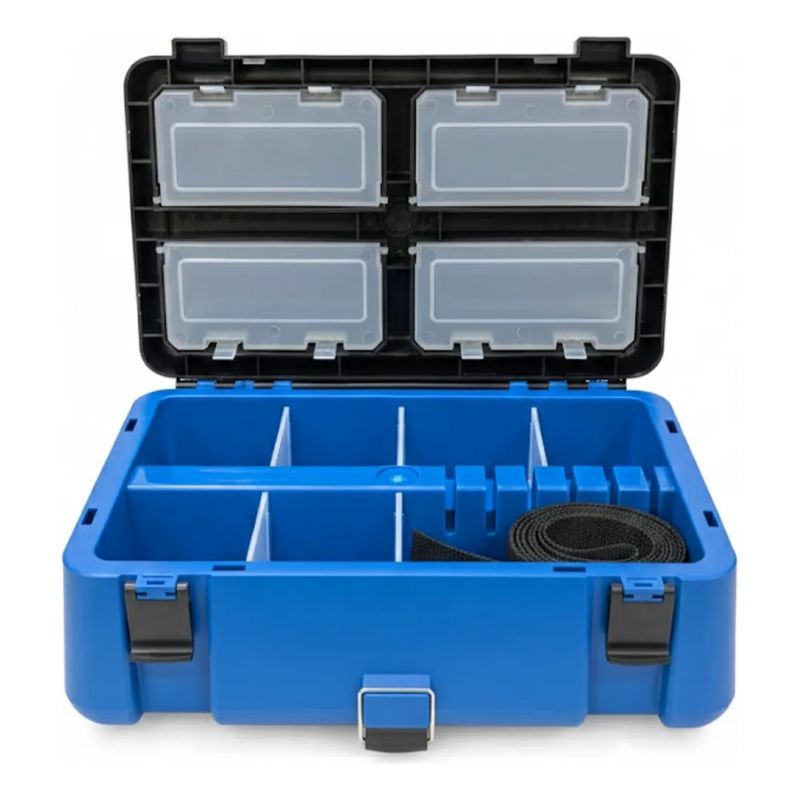 ORGANIZACIÓN SUPERIOR: La tapa cuenta con 4 cajas organizadoras integradas con trabas de seguridad, ideales para accesorios pequeños.