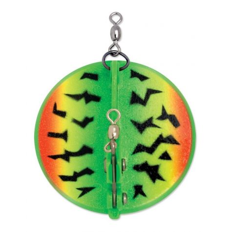 La forma redonda especial y la función multidireccional resultante distinguen al Dipsy Diver de todos los demás buceadores y planeadores. Un cambio a la izquierda o a la derecha, como se indica en la placa base, hará que el buceador siga a babor o estribor, lo que permite pescar grandes cantidades de señuelos desde un solo barco. Cubrirás más agua cuando se desplieguen los Dipsy Divers. El mecanismo de disparo ajustable se puede configurar específicamente para varios tamaños de señuelos y el tamaño de los peces objetivo. Consulte nuestro Informe técnico: Dipsy Diver, The Directional Diver y el Informe técnico n.º 15: Cucharas de arrastre para salmón de agua dulce, lubina rayada y trucha.