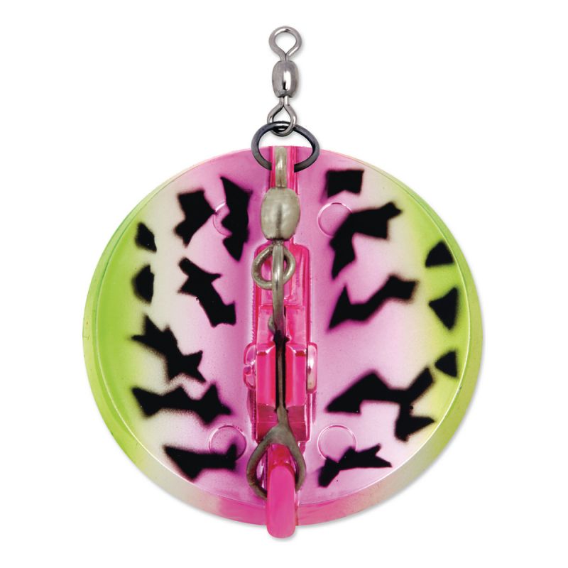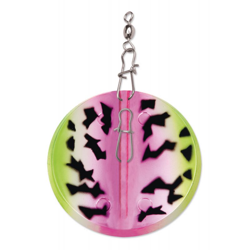 La forma redonda especial y la función multidireccional resultante distinguen al Dipsy Diver de todos los demás buceadores y planeadores. Un cambio a la izquierda o a la derecha, como se indica en la placa base, hará que el buceador siga a babor o estribor, lo que permite pescar grandes cantidades de señuelos desde un solo barco. Cubrirás más agua cuando se desplieguen los Dipsy Divers. El mecanismo de disparo ajustable se puede configurar específicamente para varios tamaños de señuelos y el tamaño de los peces objetivo. Consulte nuestro Informe técnico: Dipsy Diver, The Directional Diver y el Informe técnico n.º 15: Cucharas de arrastre para salmón de agua dulce, lubina rayada y trucha.