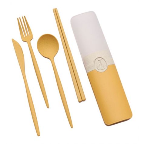 Set Cubiertos Eco Carry Fibra De Trigo Amarillo