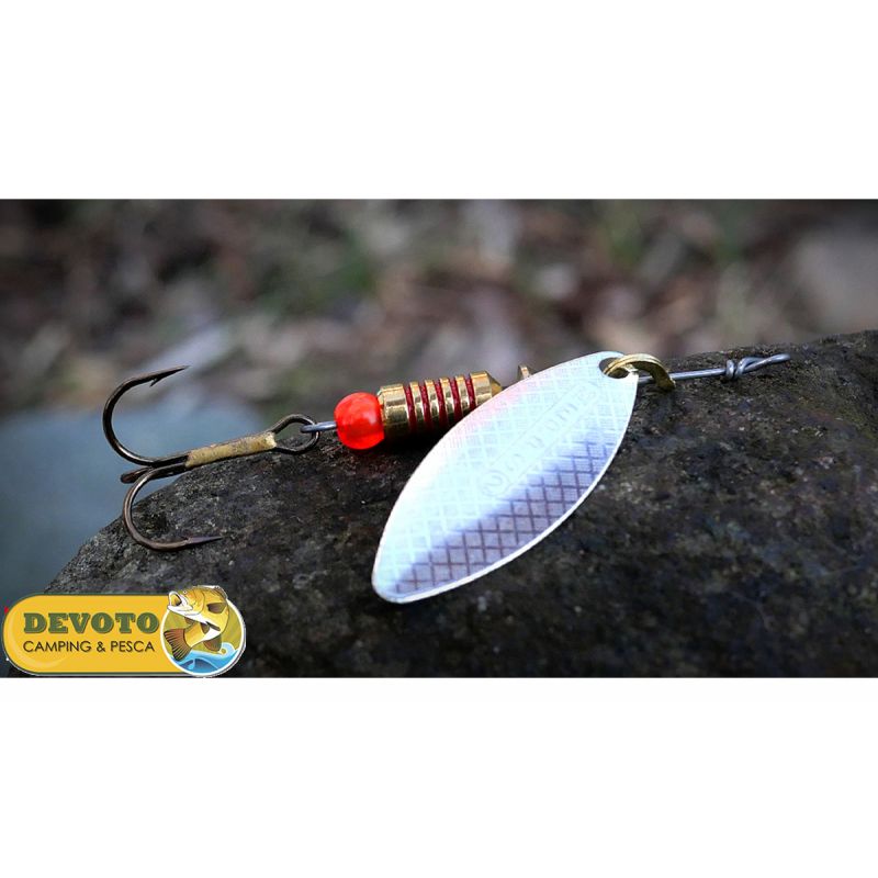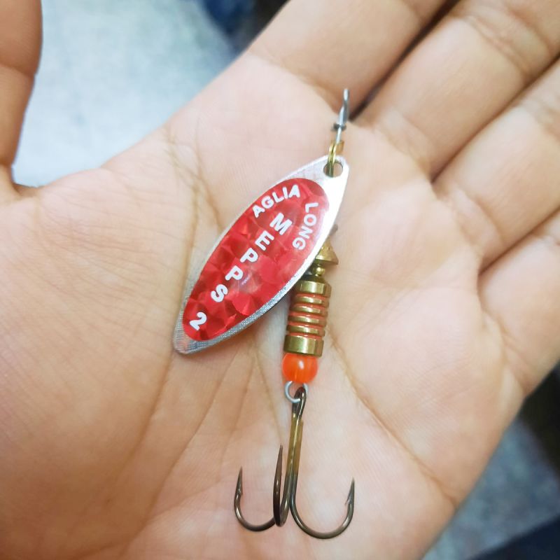 El nombre del señuelo deriva de la forma alargada de su pala, que tiene un desplazamiento de 30° respecto al eje de rotación y ofrece baja resistencia. Cabe destacar que la resistencia varía ligeramente en función de la velocidad de recuperación. Este amplio rango de velocidades aceptables, manteniendo un rendimiento impecable, es el principal secreto de la tasa de captura récord del Aglia Long. Los pescadores experimentados saben lo importante que es acostumbrarse al señuelo y encontrar la recuperación más efectiva. En este aspecto, el Aglia Long no tiene rival, perdonando incluso los errores más graves de los principiantes. Gracias a su ligera resistencia, todos los tamaños de cucharillas son aptos para la pesca a contracorriente. Al mismo tiempo, incluso en lagos, donde a menudo se requiere un giro más lento, la Aglia Long, gracias a su pala de sauce y su mayor peso, mantiene un giro lento y estable incluso en las corrientes más fuertes. Se recomienda para corrientes densas, aguas rápidas y profundas, y para la pesca a contracorriente. También es ideal para lagos donde se buscan depredadores de fondo que no responden a señuelos de movimiento rápido.