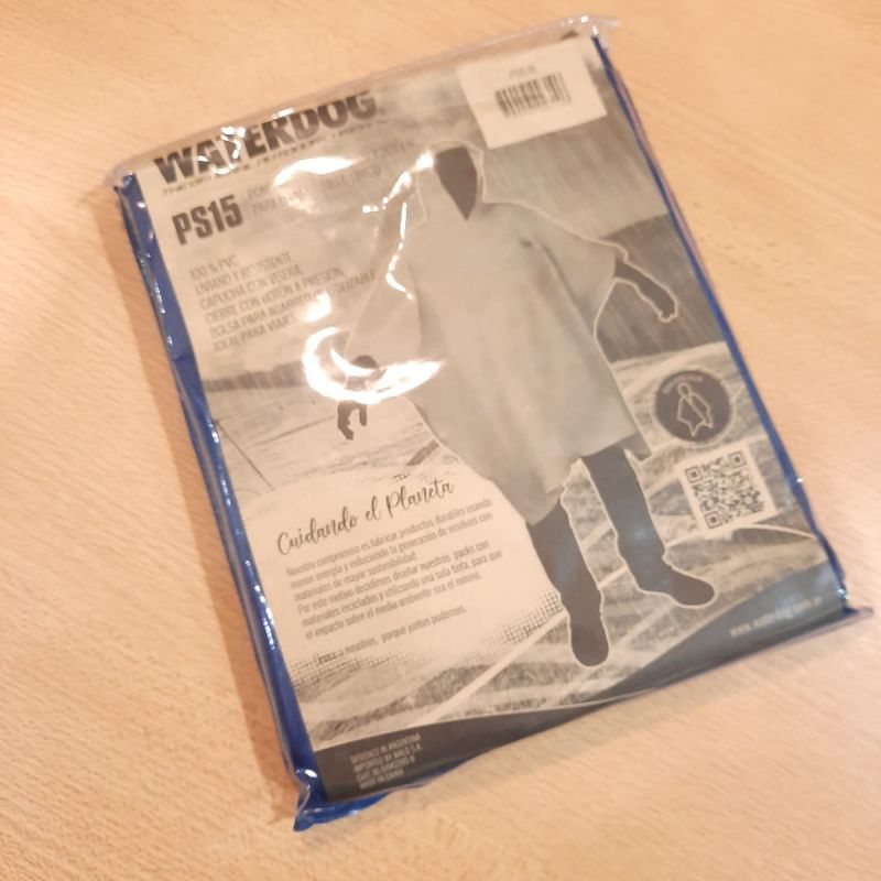 Capa tipo "poncho" para lluvia. Capucha y visera.