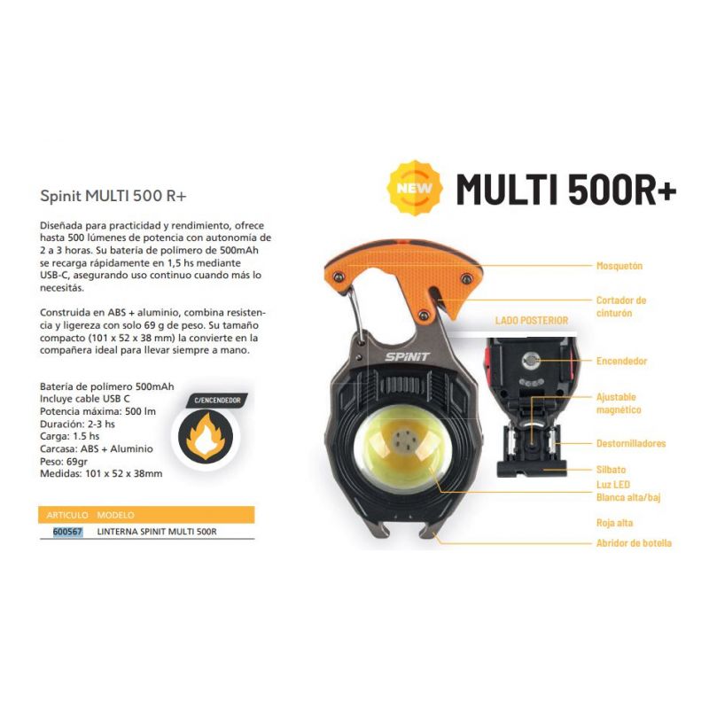 Linterna Spinit MULTI 500R+ ENCENDEDOR RECARGABLE