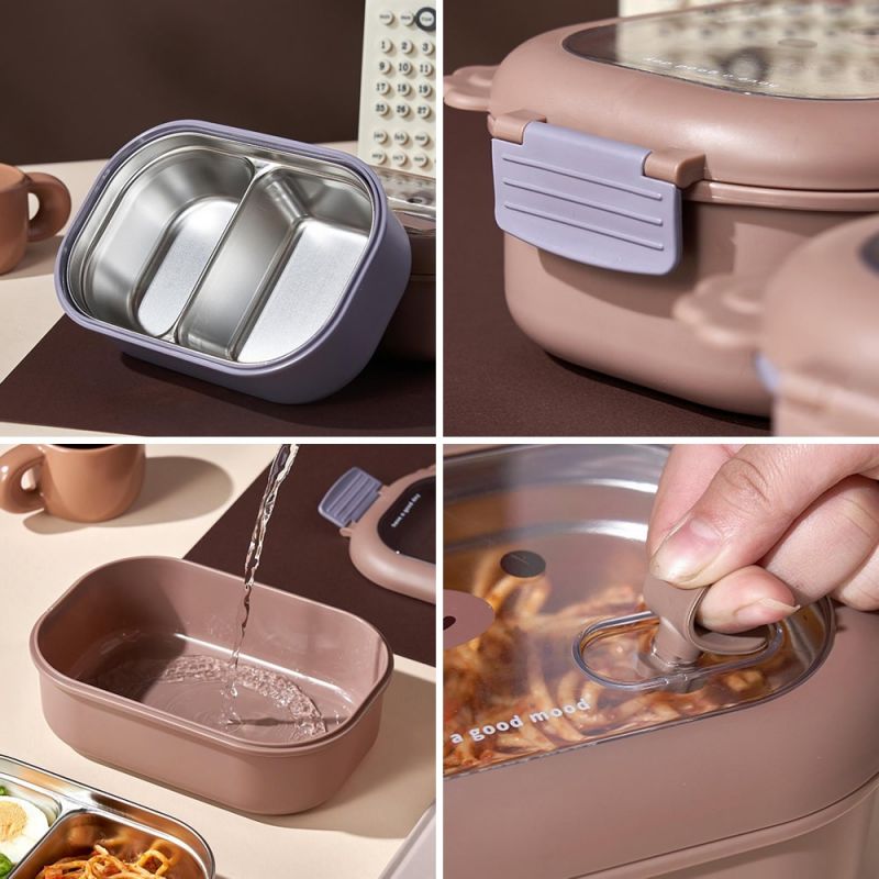 Se utiliza un diseño de compartimento para esta viandera, por lo que los sabores de la comida no se mezclan, y ambos lados están diseñados con hebillas, muy fuertes y estables.