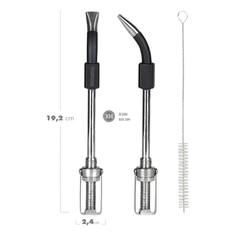 Con un diseño pensado para la comodidad, la Bombilla Waterdog Bulb04 incorpora un filtro de resorte regulable, permitiendo aumentar o reducir el flujo de líquido según la preferencia del usuario. Su tamaño de 19,2 x 2,4 cm y peso de 75 g la hacen práctica y fácil de manipular. Además, incluye un cepillo de limpieza que facilita el mantenimiento diario, asegurando mayor higiene y prolongando la vida útil del producto.