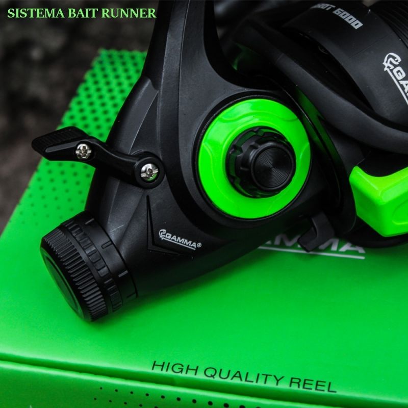 Nos teñimos de verde con el nuevo reel de Gamma Parrot con sistema Bait runner. Un reel especialmente diseñado para carpfishig con un sistema de freno doble frontal y de cola, con tecla de liberación de carretel, lo que lo hace el reel ideal para la pesca de Dorados, Surubi y Pati gigante con equipos de frontal, ya que permite la liberación de línea para la corrida del pez permitiendo con solo mover la manija que este trabe y accione el freno real del reel, de manera practica y cómoda para el pescador.