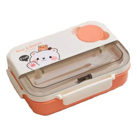 Recipiente hermético con separaciones para tus alimentos que tiene un tamaño ideal para ser transportado en el bolso de mano o en la mochila de los niños.