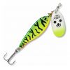 Acción rapida de minnow con cuchara giratoria. La acción rapida del señuelo del cuerpo de madera de balsa combinada con el tentador destello de un spinner en línea hace que esta sea una combinación muy efectiva.