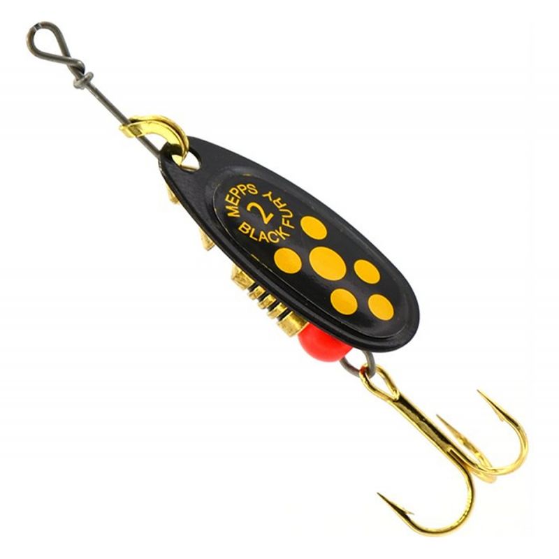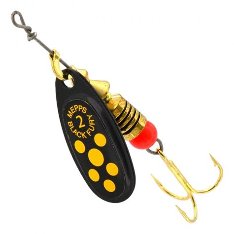 Cuchara Mepps Black Fury #2 Yellow Dot