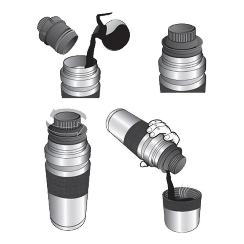 • Levante una copa: las tapas con aislamiento se doblan como una copa para bebidas para la conveniencia de la marcha