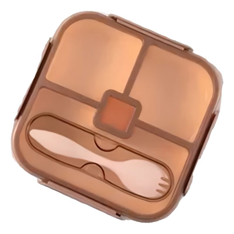 Vianda Hermética Cuadrada de 3 Divisiones + Cubierto y Salsera Good Lunch - 1100ml Marron