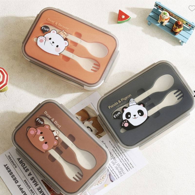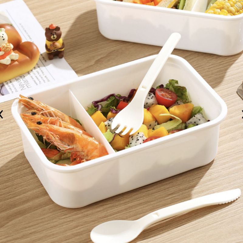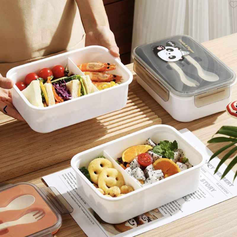 Vianda Tapers Lunch Box de Plástico con 2 Divisiones + Cubiertos - 1200ml NEGRO