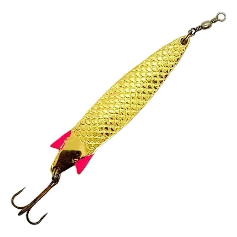 Cuchara construida en bronce ideal para la pesca de truchas, salmones, dorados y otros peces de gran porte.