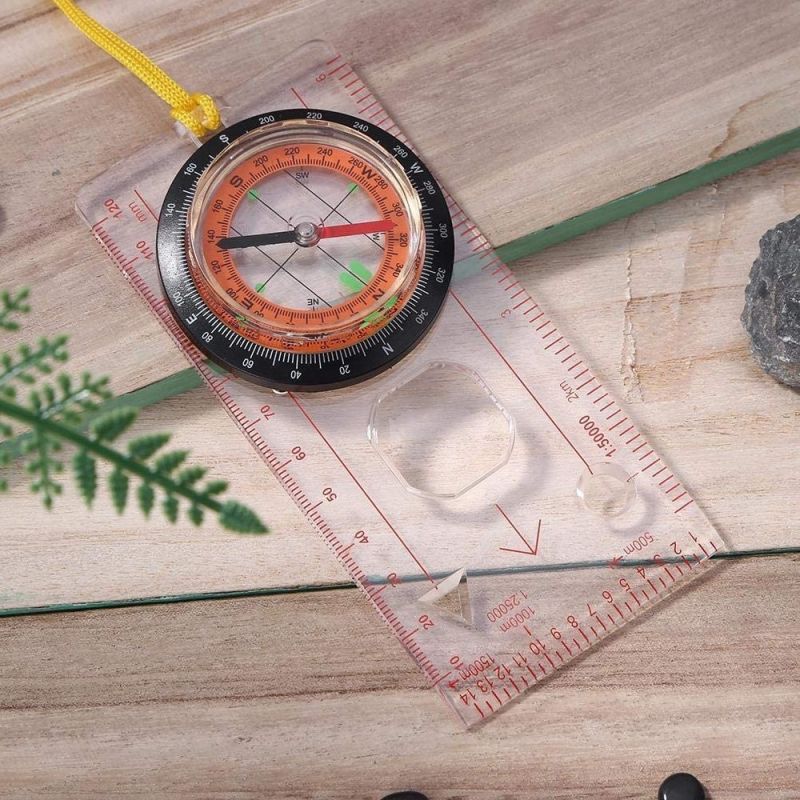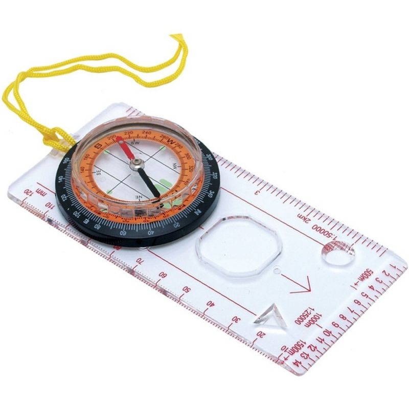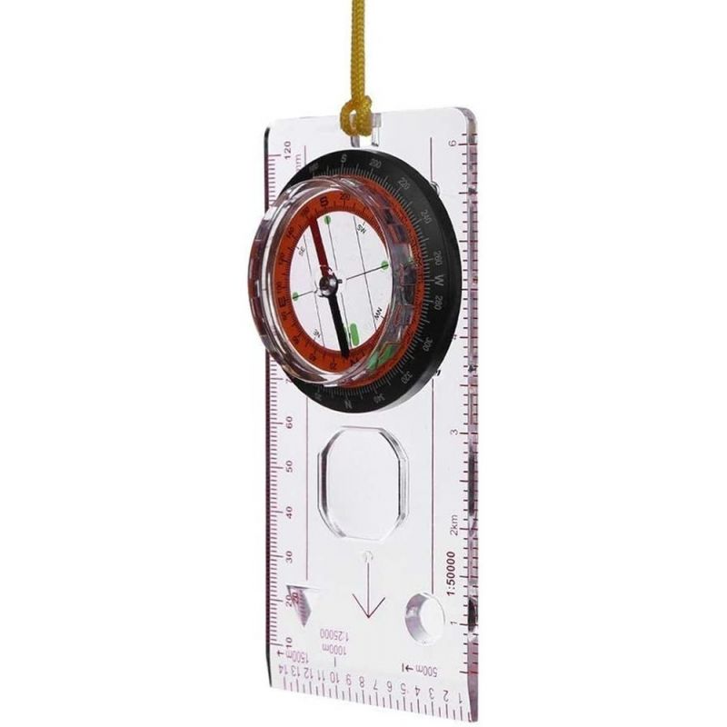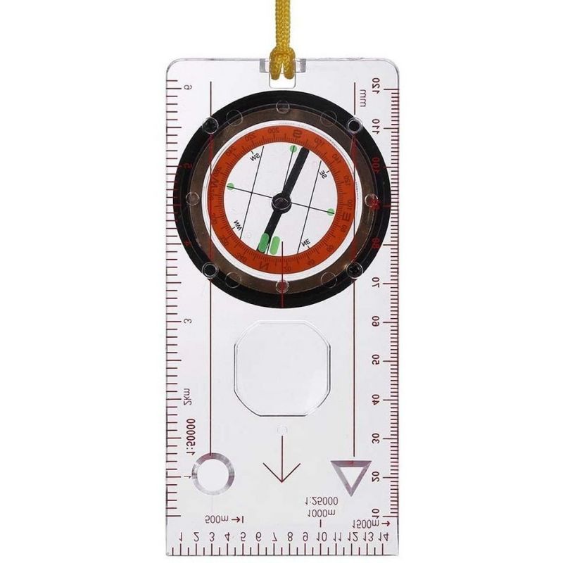 Clásica brújula cartográfica, ideal para excursionistas ya que permite ver claramente el mapa, cuenta con una lupa y regla de diferentes medidas a escala.