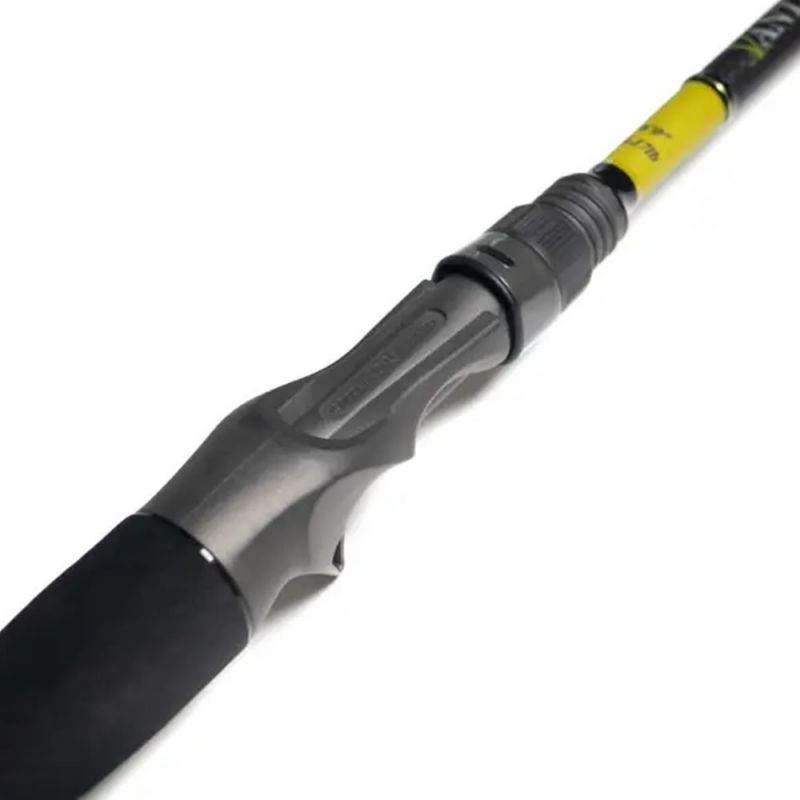 El modelo Vatnage Hybrid esta hecho con Carbono 24T que es un material mas resistente y liviano que el grafito común, su diseño esta hecho con el tramo inferior telescópico, esto permite que la caña guardada sea mas corta.