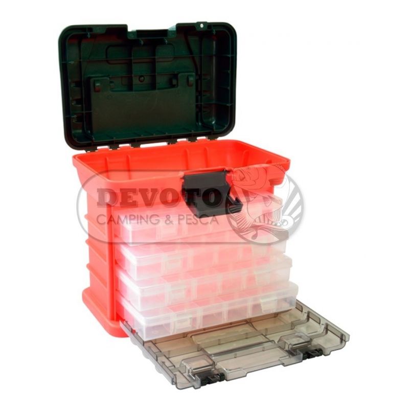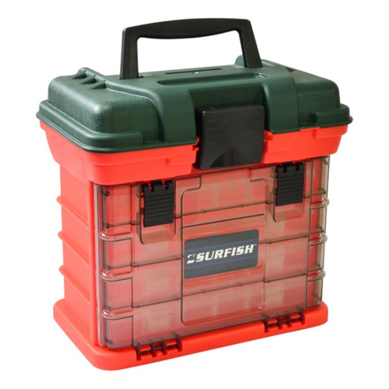 Caja Pesca Herramientas Surfish Plastica Con 4 Cajas Plomo Lineas Rotores Señuelos Pinza Anzuelos Tornillos Repuestos