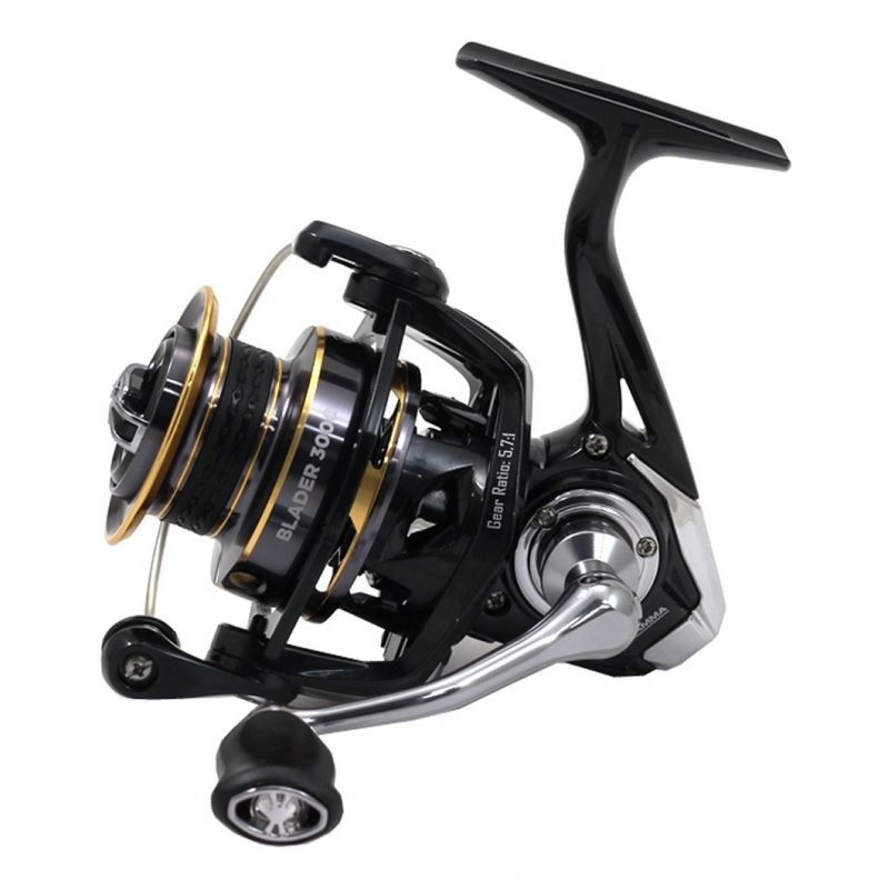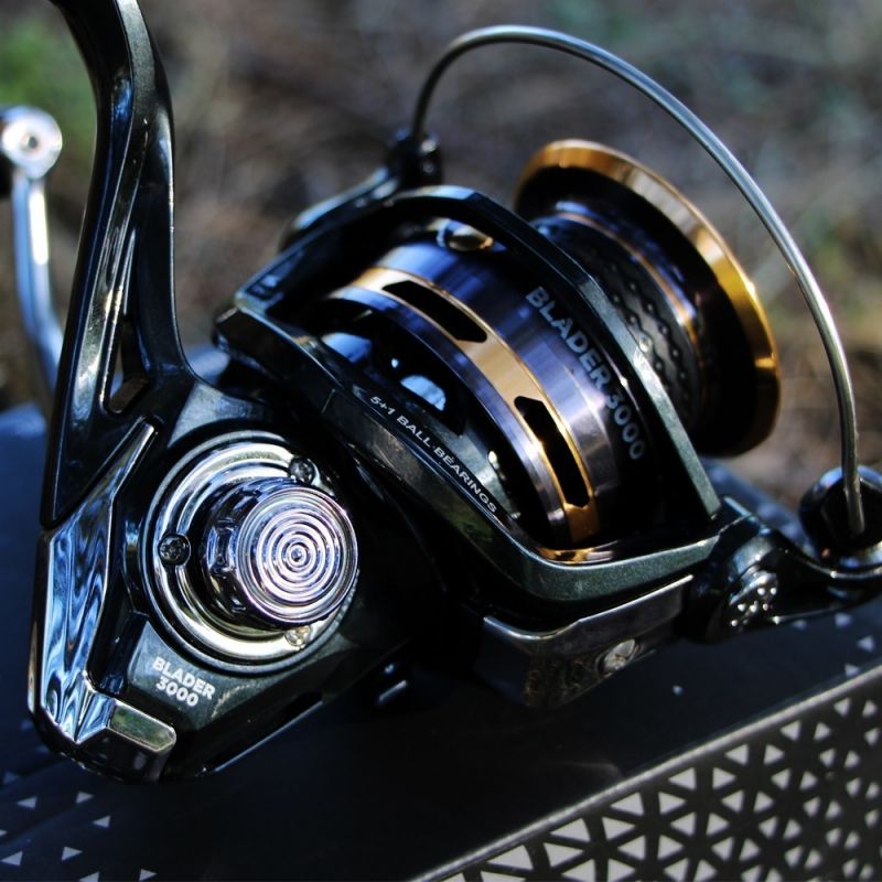 Carrete metalico alivianado con banda de goma que evita patinar sobre el carrete nylon o multifilamento.