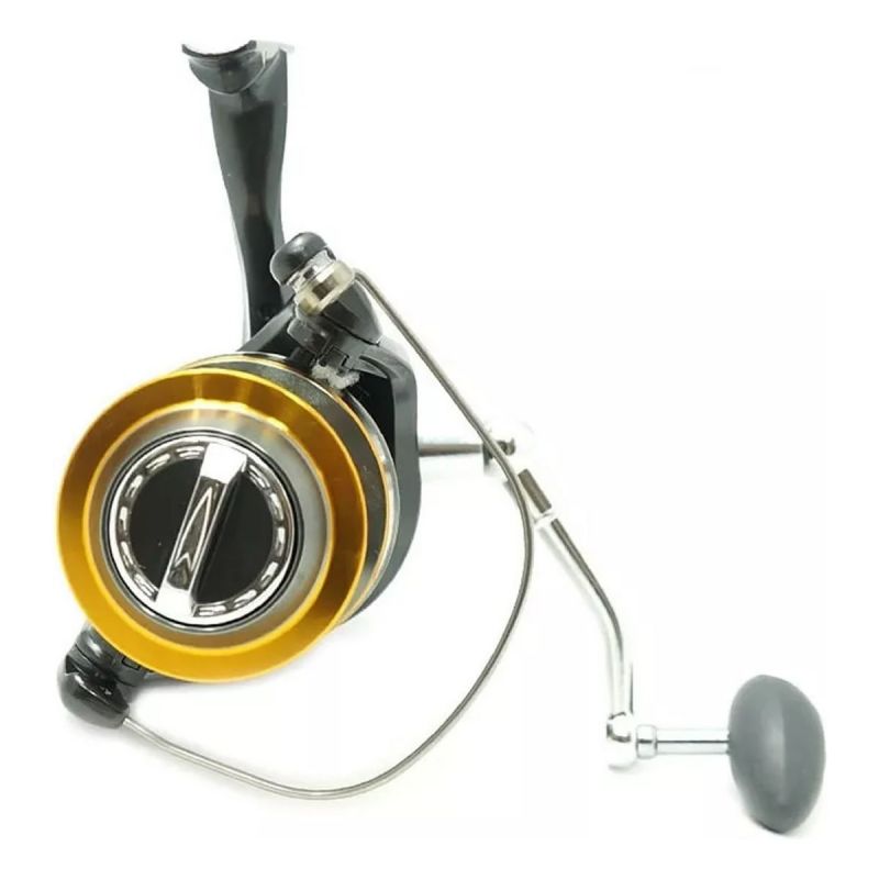 Reel de lance, con carrete de aluminio cónico. Ideal para pesca de costa o muelle, en agua dulce o salada.