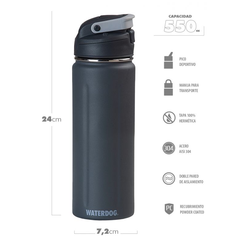 Botella Acua Waterdog 550 Cc Dark Graphite