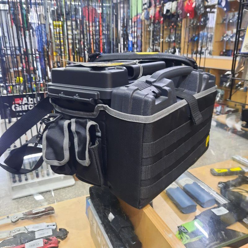 El bolso cuenta con 2 cajas originales de Plano, una porta armas y otra porta accesorios municiones.