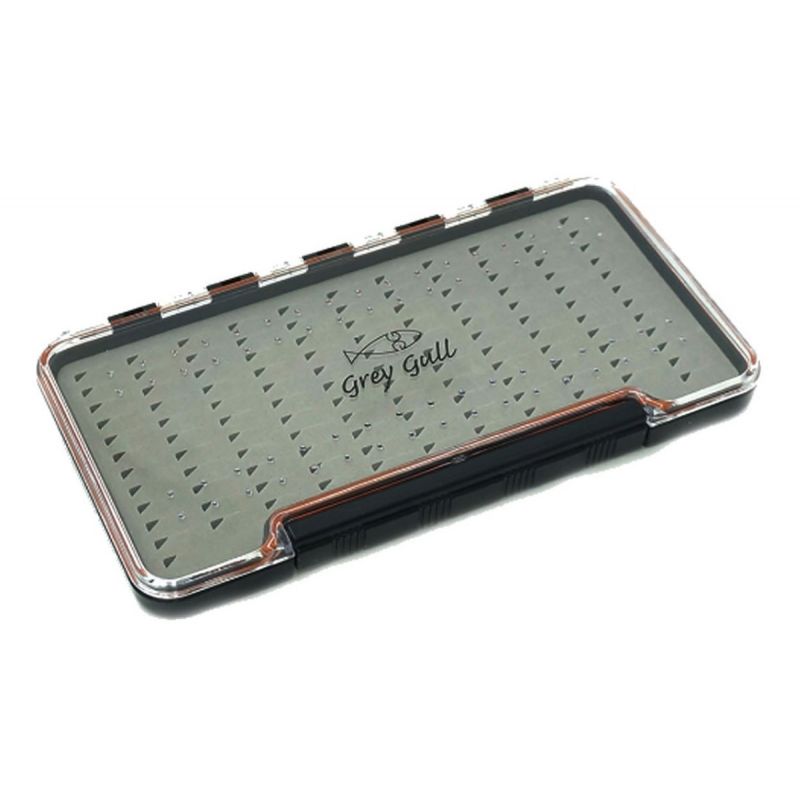 caja de moscas grey gull estanca, simple de una sola tapa.