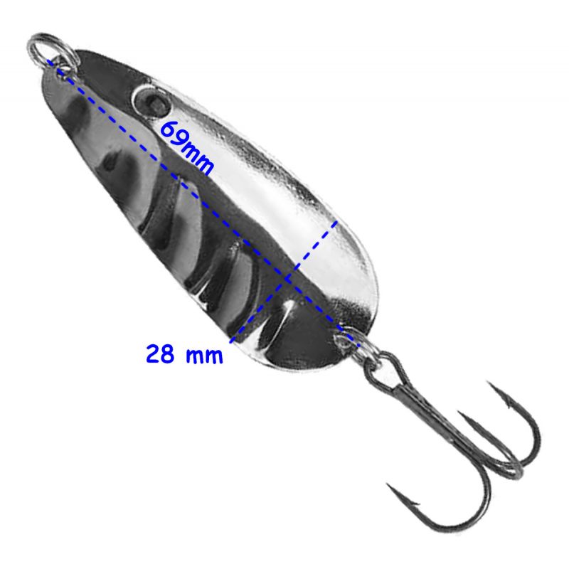 Cuchara ideal para la pesca de depredadores en rio, gracias a su formato ondulante podes pesca cerca de las piedras y aprovechar su brillo para irritar a los depredadores inertes.